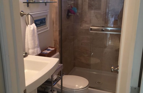 Owner lives in main house on the property, but structures are separate and private. Private driveway/parking space for use by guests. For longer stays, laundry is available. Beach chairs and an umbrella are provided. Pets are welcome, and a friendly dog lives on the main part of the property.