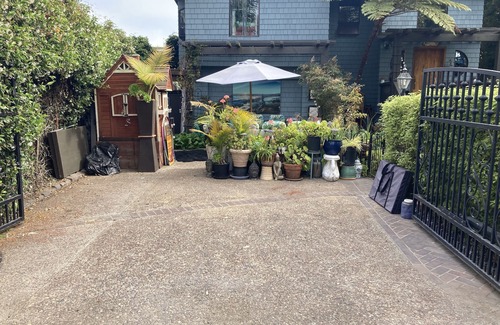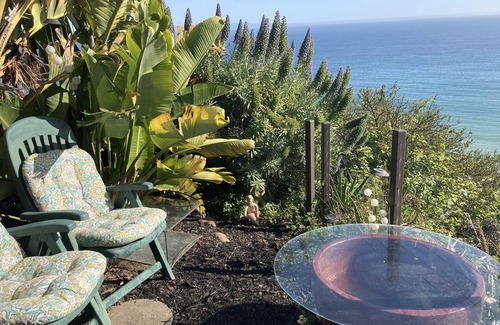 Hosted rental permit #231268. Panoramic ocean views above cliff overlooking the ocean. Sanctuary, blends indoor-outdoor living. This is a rare opportunity, California's most coveted coastline, a legacy property where luxury meets the unparalleled beauty and exhilarating surf of the Pacific. Own entrance, ocean view from yard and bed. Hot tub is available for an extra fee. It is next to the Sunroom on the 3rd floor of the home. There is also a BBQ, firepit, lounging areas, tables. Your beach studio has a private covered patio with a refrigerator, and coffee maker. Nice quiet neighborhood. Beach access is 6 to 8 blocks away on Beachgate Way. The stairs will lead you to the State Beach. You can walk or drive. Free parking is by the stairs leading to the beach. When you first arrive, park in the driveway. Your studio is behind the brown gate to the left. I will leave the key in the studio door for you if you tell me around the time of your arrival. No other visitors are guests are allowed, security deposit may be withheld. When you first inquire about the studio, please tell me a bit about yourself or your situation. Your studio yard has seating and a BBQ for your use only. Washer and dryer upon request, or anything else you may need, ice, more coffee, etc. just ask!! Early check-in or late check-out is $20. an hour.