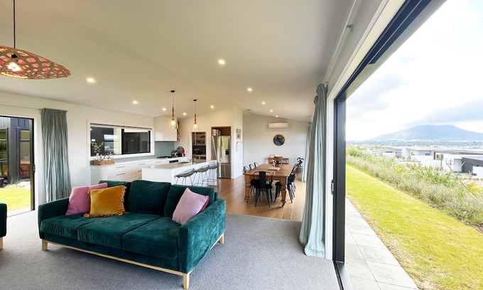 Wake up to breathtaking panoramic views of Lake Taupō, Mt Tauhara, and the iconic peaks of Mt Ruapehu and Mt Ngauruhoe in this brand-new, stylish home. Guests will love the fresh design, family-friendly features, and easy access to town, parks, and outdoor adventures.