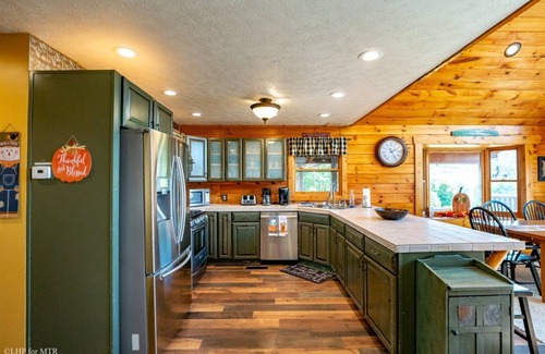 With four cozy bedrooms, three and a half bathrooms, and accommodations for up to 12 guests, Panoramic Point beckons with its spacious yet intimate ambiance. Adorned with rustic charm and modern comforts, including air conditioning for summer days, this haven promises an unforgettable getaway.