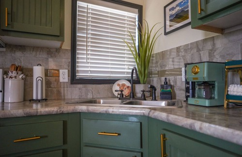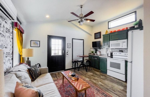 This tiny home is a gem, with a fully stocked kitchen, wifi, smart tv, and patio and grill to accommodate your needs while you rest between exploring all that is far West Texas!