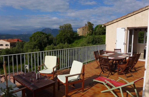 Panoramic view of the sea and the mountains, Detached village house, is located in Calcatoggio. Panoramic view of the sea and the mountains, Detached village house, provides accommodation, featuring Child Friendly, Kitchen, Barbecue/Outdoor Cooking, among other amenities. This Villa features Child Friendly, Kitchen, Barbecue/Outdoor Cooking, to make your stay a comfortable one.