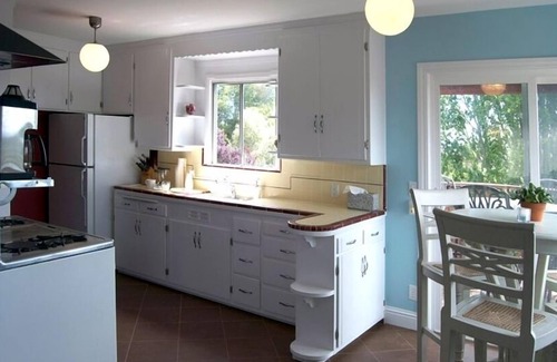 Can you live without an automatic dishwasher? As an interior design choice, we kept the vintage 1949 kitchen with the beautiful gas standing pilot Wedgewood stove. Our cabinets are original and of a depth that is slightly too narrow to accommodate a dishwasher.