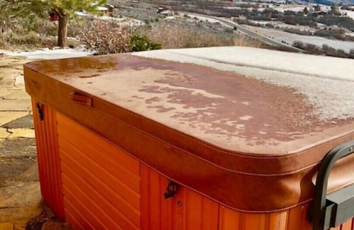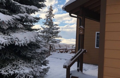 Enjoy the view of the Mountain range and valley below. Sit out on your deck and watch the stunning sunrise on the peaks or enjoy the dramatic sunset from your jacuzzi or around the fire pit on your patio.