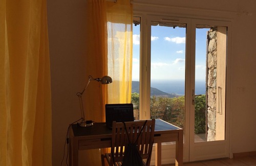 The villa can very comfortably accommodate up to 5 guests. It has 2 bedrooms. All the rooms have their independent showerrooms and are equipped with modern amenities. Most of the house has WIFI internet access. You will also love the large wooden terrace in front of the house. A swimming pool nestles amongst granite boulders and trees and takes advantage of wonderful sea, mountain and villages' views across the Balagne. The villa is truly magical and is an ideal place to discover the beauty of La Balagne and other main attractions of Corsica such as L'Ile-Rousse and its market, Calvi and its night life.