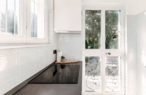 The magnificent garden, accessible both via the external side stairs from the first floor and from the French door of the bedroom on the ground floor, is the ideal place to relax outdoors. Here, you can sunbathe and walk on the soft green grass, or take advantage of the wooden table under the porch for unforgettable moments with friends and family.