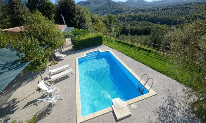 hot water via solar panel. gas heating and / or wood-burning fireplace. Swimming pool (8x4 meters - depth 1,2- 2,0 meters) with outdoor hot shower, a bathroom dedicated to the pool and garden, terrace, garden furniture (beds, chairs, chairs), barbecue. Various shady places, in the patio of the laurels, the holm oak and oak forest, olive grove, under the jasmine pergola overlooking the bedrooms.
