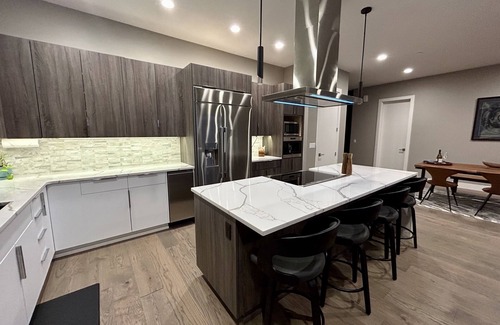 Walk back inside to oversized plush furniture, an amazing kitchen fully stocked with everything you need to entertain and cook for a group of up to 10 people. The designer kitchen comes with your very own espresso and ice machines and all new state of the art appliances.