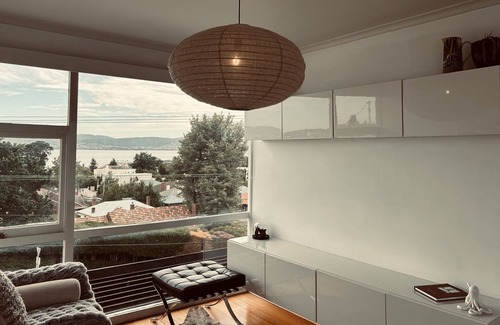 Panoramic water views, sunny and private - walk to beach, cafes and shops | Apartment in Hobart