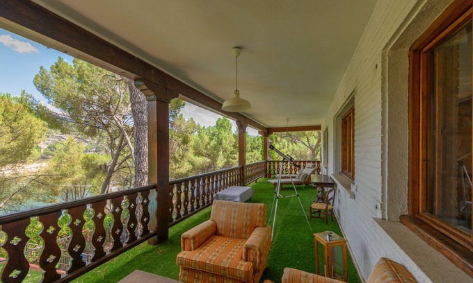 In summary, this colonial-style villa on the first line of the San Juan Reservoir, Madrid, is the perfect place to spend a vacation with family or friends, enjoying the tranquility and outdoor activities.