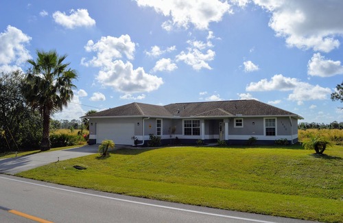 Located in Lehigh Acres, this welcoming vacation home brings it all within your reach. Jump into your car and make short work of the 25-minute drive to JetBlue Park at Fenway South or the 8-minute drive to Lehigh Acres Welcome Center (and enjoy the property's convenient covered onsite parking in the meantime).