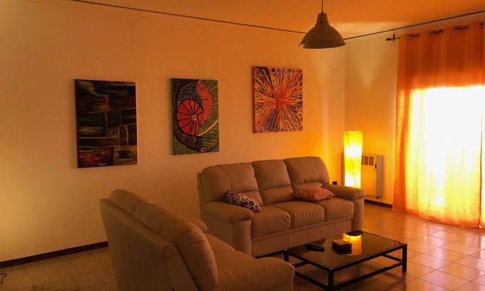 Spacious and bright apartment, on the second floor with elevator, with veranda and balconies in the Caposoprano area, possibility of parking with 60 cents per hour ticket payment from 08:00 to 13:00 and from 16:00 to 20:00. Not far from the sea or from the historic center. Less than 200 meters from the Greek fortifications of Gela, better known as Mura timoleontee di Caposoprano, they constitute a very important archaeological evidence of the defensive system that surrounded the hill. https: // en. wikipedia. org / wiki / Mura_timoleontee