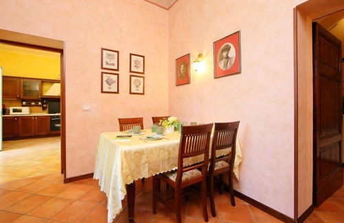 10-room villa 300 m2 on 3 levels, on the ground floor. Antique and luxurious furnishings: entrance hall. Living room with open-hearth fireplace, satellite TV and flat screen. Dining room with dining table. Lounge with open-hearth fireplace. Kitchen 18 m2 (5 hot plates, oven, dishwasher, toaster, microwave, freezer, electric coffee machine). Shower/bidet/WC. Upper floor: 2 double bedrooms, each room with shower/bidet/WC and air conditioning. 1 double bedroom with air conditioning. 1 double bedroom with air conditioning. Exit to the terrace. Shower/bidet/WC. Gas heating. Heating available only from 15.04. to 15.10. 2nd upper floor: small living room, ceiling height 140 - 218 cm. 1 double bedroom with sloping ceilings, ceiling height 140 - 218 cm with shower/bidet/WC. 1 room with sloping ceilings, ceiling height 140 - 218 cm with 2 beds. Garden. Terrace furniture. Facilities: washing machine, mosquito net. Internet (WiFi). Maximum 1 pet/ dog allowed. IT054003C25U030295