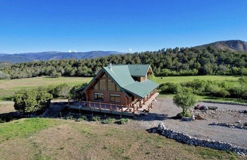 Welcome to the stunning Dorado Elk Ranch Vacation Home! We are tucked in right under the 11,400-foot peak of Mount Lamborn, which dominates the views in the North Fork Valley. We offer over 400 acres of beautiful mountain land for excellent hunting, hiking, and exploring! Our beautiful, cozy, yet spacious cabin has breath taking views from our wrap around porch! Enjoy a cup of coffee while listening to the creek flow beside the house as you watch the turkeys, trophy mule deer, or elk roam the property! The main living area is an open living room with cathedral ceilings, and two downstairs bedrooms and a full bath. The upstairs loft area features the master bedroom, 5-piece bath, and roomy walk-in closets. We come equipped with a washer & dryer unit in the home. Our kitchen comes with all the appliances and cookware you need! And for convenience, we are only 10 minutes from town! Come see for yourself, and soak in this beautiful cabin, explore our private land and enjoy our breath taking views!