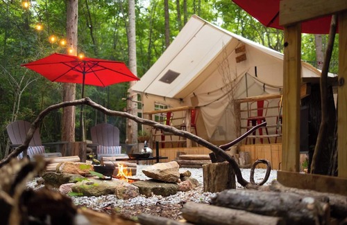 Pap's Glamp is nested on 10 acres of beautiful Lake Hartwell. It is surrounded with natures offerings. Enjoy hiking, fishing, kayaking or lounging in the hammock. The camp itself is fine camping comfort in a new 14X16 wall tent with sleeping accommodations for 4. There is a fridge and coffee maker. There is a private bath house with toilet, sink and shower. Build yourself a fire and do some campfire cooking. Surely have some smores.