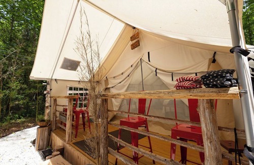 Please know that you are exposed to nature and it's elements. While we make every effort to provide a safe Glamping environment, you agree that we are not responsible for acts of god, or injuries on the premises. Use your discretion when Glamping in inclement weather.
