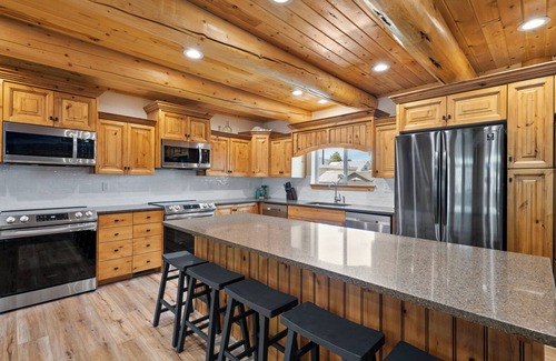 Your stay at Papa Bear Lodge includes impressive amenities designed to enhance your wedding experience. Revel in a fully equipped culinary kitchen with two ranges and refrigerators, perfect for catering your celebration or hosting family gatherings. The lodge boasts multiple entertainment options such as pool tables, a theater room, and game spaces, ensuring there’s something for everyone to enjoy. After a day of festivities, unwind in the private outdoor hot tub or relax around the fire pit under dreamy accent lighting, creating picture-perfect moments that you will cherish forever.