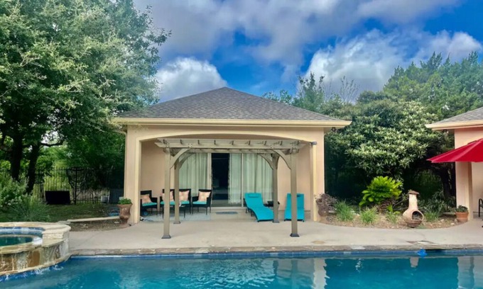 Relax in style at our poolside casita, nestled on a micro-ranch near Randolph Air Force Base. Perfect for pilots in training, travel nurses, or short-term stays.