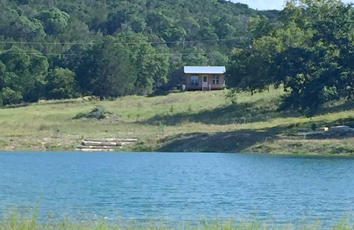 Good News, see notice at the end.This newly constructed wood and rock cabin has a front porch that overlooks a pond. It is perfect for a quiet, secluded get-away from the city. You can go hiking over the hills, fish down on the river or just relax in the hammock. All kinds of native and exotic Texas wildlife can be seen on the property. The cabin is located just a half mile off Cade Loop road on 120 acres. This area is the most beautiful part of the Texas Hill Country. Though the cabin is out in the country, it is less than a five minute drive to the Guadalupe River and Ingram Lake. The cabin has 400 square feet of living area with a living room/ kitchen, bedroom and bathroom. The kitchen has a small refrigerator, microwave, sink, and large toaster oven. The living room has a couch that converts into a queen sleeping sofa. The bathroom has a sink, toilet and shower. Ceiling fans are in every room and there are two fans on the front porch. Electric hotel-like ac/heating units in the bedrooms keep you warm or cool. It is a perfect place for a couple or a small family. All of this, plus the modern luxury of limited data ;free WI-FI!