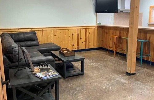 Relax with the whole family at the peaceful Pappy’s Trout Lodge. Half a mile from Montauk State Park. The lodge is the perfect relaxing spot for a group or a trip by yourself. Enjoy a home cooked meal in our fully equipped commercial kitchen, or grill out on the back porch! Pappy’s lodge sleeps four! One queen size bed and a queen size pull out. Come stay at Pappy’s Trout Lodge and start making memories and traditions at Montauk State Park! Main level, outside fire pits, and playground