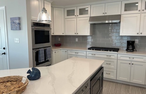 Sip your coffee in the morning and watch the sunrise from this exceptional vantage point. If the weather is a little cooler, take in the views from inside through beautiful floor-to-ceiling windows, with a nice warm fire roasting in the gas fireplace. The large sectional couch can provide comfortable seating for the entire family. Prepare meals in a state-of-art kitchen with brand new appliances, dishes and kitchenware, and plenty of counter space for cooking. The kitchen is equipped with a double oven, dishwasher, and reverse osmosis water purification system. And the best part is the whole family can dine together at the large dining table. The kitchen, dining room and living room are all part of the open floor plan that provides plenty of room for entertaining as well as the breathtaking views of the Pocomoke River from every angle.