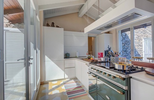 The gorgeous panoramic lake view setting of the villa will tempt guests to kick back and relax accompanying the dining terrace and a set of sun loungers complementing the private outdoor pool. Please note that access to the villa is via a narrow uphill 200-metre road (suitable only for small-medium cars), before taking a steep downhill road to the villa’s gated entrance, where on-site parking is provided (larger cars can be parked at a free car park by the church, the driver though will then need to reach the villa on foot). From its scenic hillside location, the amenities of Belgirate can be reached by car in 2 minutes.
