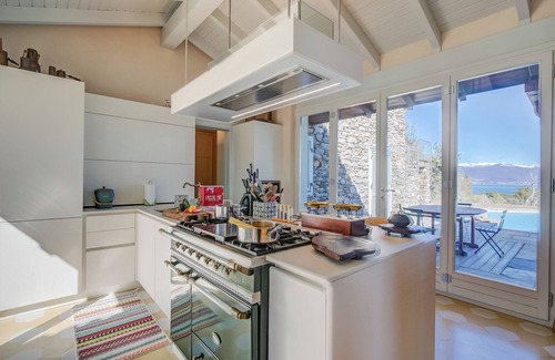 Soak up effortless escapism on Lake Maggiore, from this modern poolside villa with panoramic lake views!