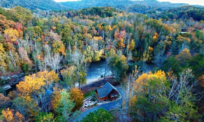 Paradise at the Rivers Edge! A Private Waterfront Log Cabin,snow ski/fish nearby | Cabin in Waynesville