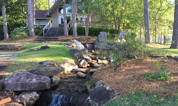 Beautiful waterfront home located on beautiful Lake Martin. The home has 3 bedrooms and two full bathrooms plus a sleeping loft with twin beds. The outside setting is breathtaking with a custom made rock waterfall with two ponds that flow into the lake. A boat house with outdoor storage, and two separate docks lends itself to a total relaxing vacation. The town of Dadeville offers wonderful golf courses at Still Waters , plenty of restaurants both casual and elegant dining, many water activities, several marinas where one can rent boats or other water toys, and some of the friendliest people in the south! I know you will enjoy the lake life living as much as I do and I hope you find my home relaxing and stress free. I live 30 min. away so should you need anything while on vacation, I can be at your disposal.