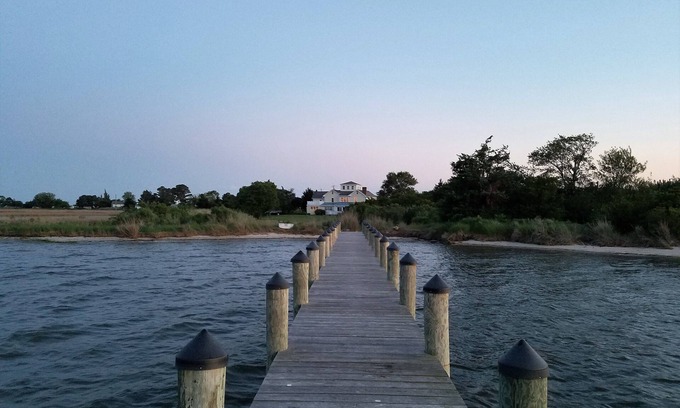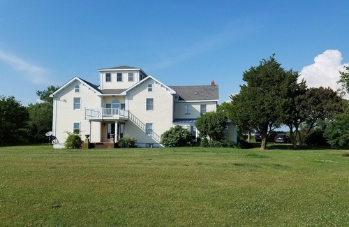 This gorgeous waterfront home boasts its own beautiful, private 100 ft pier and shoreline. Crab and fish right off the pier! The 4100 sqft house is a sight to see with its expansive layout and its unique 3rd floor tower room. This room offers a 360 degree view of the Tangier Sound, Goose Creek, Mine Creek and the Manokin River. Toddler bed and Pull out couch are an added bonus!