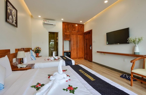 Paradise Cu Chi Hotel offers 40 air-conditioned accommodations, which are accessible via exterior corridors and feature minibars and complimentary bottled water. These individually furnished accommodations include desks. Memory foam beds feature premium bedding. 42-inch LED televisions come with satellite channels.