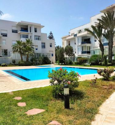 Offering a garden, Paradise Essaouira Appartement offers accommodations in Essaouira. Both free Wifi and parking on-site are available at the apartment free of charge. The apartment provides an outdoor swimming pool and full-day security. Providing a terrace and sea views, the spacious apartment includes 1 bedroom, a living room, satellite flat-screen TV, an equipped kitchen, and 2 bathrooms with a shower. The property offers pool views. Plage d'Essaouira is a few steps from Paradise Essaouira Appartement, while Golf de Mogador is 2.4 miles away. Essaouira Mogador Airport is 8.7 miles from the property.