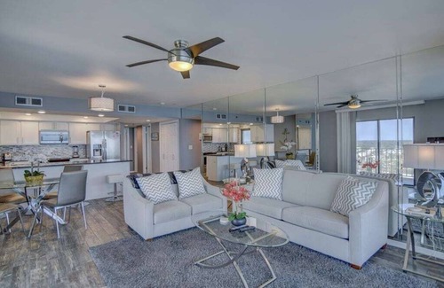 Watercrest Condomium has recently been completely renovated. Every window has been replaced, concrete and stucco repaired, new paint and resurfaced walkways and balconies. It is the newest and brightest complex on the beach. We as owners along with our HOA have spent 4.3 million dollars on this renovation. Come stay at the newest resort complex on the beach!!! Our unit has been recently renovated. Reserved beach chairs/umbrella included in price!!! We're located on the quiet family end of the beach. However, restaurants and shopping (Pier Park) are just minutes away. Our unit has been completely remodeled. New stainless steel Frigidaire Gallery appliances, custom cabinets and vanities, granite throughout, new walk in shower and bathrooms with brushed nickel Moen faucets, Whirlpool Duet front load washer and dryer. Three flatscreen Samsung LED TV's ranging from 48" to 55" all with HD service and Xfinity DVR service, Netflix and Prime Video.. High speed WiFi. New porcelain tile plank flooring. I could go on and on about whats new, only the original drywall remained and not even all of that. Walls were knocked down to open the living space. The view is spectacular from the 16th floor end unit 2 bedroom 2 bath 1400 sq feet with 740 square foot wrap around balcony. King master, 2 Queens in guest room and a sleeper sofa so we sleep 8. Sunsets are amazing and dolphins are seen daily. On site amenities include a heated pool, hot tub, kiddie pool, tennis, shuffleboard, Pickle Ball courts, Bocci Ball Court, and indoor racquetball court. 2 reserved beach chairs are included!!!!! No long waits for the elevators, higher floors have dedicated elevators. You will absolutely not be disappointed with your stay.all the outdoor furnishings are new. You will find it well maintained and very clean. Please come and experience this beautiful stretch of sugar white sand beaches, abundant entertainment, and friendly southern hospitality. Of course the beach is the main attraction but the pool complex with large pool, heated in cooler weather, kiddie pool and hot tub, are a cut above also with The Tiki Bar poolside at serving your favorite frozen cocktails along with snacks and light lunch entries. Everything you need for an amazing day at the beach! There are 27 miles of beach in this Northwest Florida paradise and Watercrest is one of the most beautiful well maintained condos in the area. We love this East end of the beach because the traffic is so much lighter than in other areas. Also, parking is easy at Watercrest and the elevators are fast. You will also have the opportunity to enjoy the on site amenities such as tennis and shuffleboard courts and pickle ball courts, heated pool cooler weather, hot tub, kiddie pool, indoor racket ball court and exercise room.