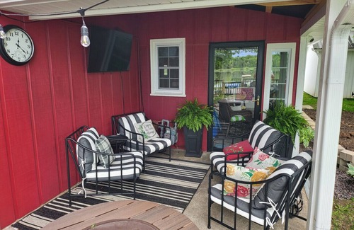 Perfect for a peaceful getaway, this charming lake house offers stunning views of the surrounding countryside and access to a private lake. With a rustic yet modern interior, you'll feel right at home in this cozy retreat. The master bedroom features a comfortable king-sized bed and the second bedroom has two twin beds, making it an ideal space for a family or friends. The spacious living area boasts large windows that let in natural light and allow you to take in the breathtaking views. The kitchen is fully equipped with everything you need to prepare delicious meals, and the outdoor deck is the perfect spot to enjoy a morning coffee or evening cocktail. Fish, or kayak in the private lake just steps away from your front door, or take a short drive to explore nearby attractions. Whether you're looking for a peaceful escape or an outdoor adventure, this lake house is the perfect destination. Book now for an unforgettable experience at the lake! We allow One dog per stay under 30lbs with paid fee.