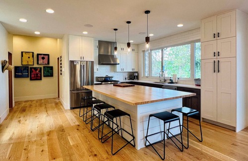 In addition to the amenities listed up above, this home is equipped with basic supplies such as: linens, towels, a few rolls of toilet paper, a roll of paper towels and cleaning products. The kitchen comes with standard amenities, coffee maker, and utensils. Should you need more specific items, we may be able to provide them at an additional cost under our concierge services. Please do not hesitate to ask, and we will see what we can do.