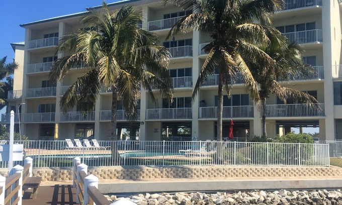 Bring your suitcase and bring 1 dog 40 lbs or less with you drop your bags. This modern 1 bedroom 1 bath 1st floor condo is on the “quiet side” of the building you will not hear an traffic from the overpass It boasts a large private balcony over looking the Boca Ciega Bay and is a perfect way to enjoy the sunsets or watch the dolphins and boats go by. This condo is fully furnished with 2 HD TV's free internet washer and dryer, cook and dinnerware. An extra comfortable Murphy bed makes sure your extra guests wont have to sleep on a pull out sofa bed. 10 minute ride to all the gold coast beaches and some of the finest restaurants and bars. The resort offers an over-sized pool deck, pool, and jacuzzi that overlook the bay. It is truly Paradise Found.