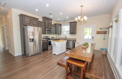 Make this an experience you won't forget... Fully equipped 4 bedroom 3 bath home, fantastic boathouse, and ‘Big Water’ access! Ideally located near restaurants, stores.