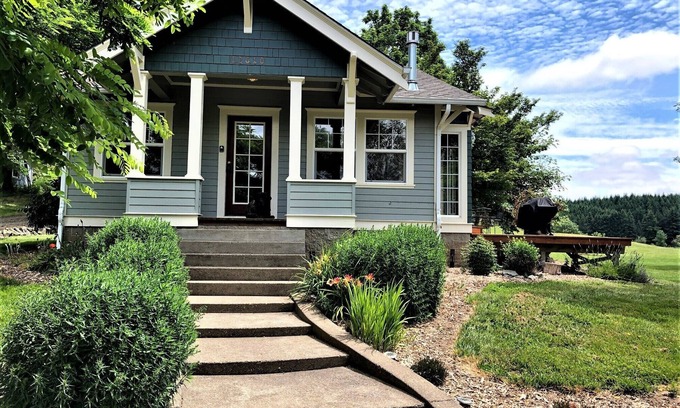 The Craftsman cottage is on a private 15 acre wetland providing excellent views of a wide range of birds and other wildlife. French doors open to a deck and huge yard that meets the wetland and walking path around the ponds. Less than 2 miles from the house, enjoy kayaking and walking the Luckiamute Landing Trails at the confluence of the Luckiamute, Santiam and Willamette rivers. Relaxed open design, vaulted ceilings, queen beds, wifi, smart tv with Netflix, full kitchen and coffee bar.