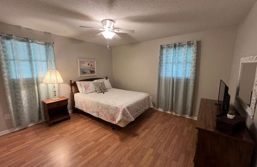 Paradise Point 2BR 2BA is a vacation home that offers guests a comfortable place to stay in Lake Murray Shores with a garden and free Wifi. The air-conditioned vacation home is composed of 2 separate bedrooms, a living room, a fully equipped kitchen with a dishwasher and oven, and 2 bathrooms. A TV is offered. For added privacy, the accommodation features a private entrance. Columbia Metropolitan Airport is 35 miles from the property.