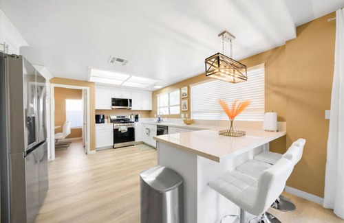 Paradise Retreat is located in a peaceful and safe neighborhood, perfect for a relaxing stay. Nearby attractions include the Bellagio Fountains, The LINQ Promenade, and the High Roller Observation Wheel. Enjoy quick access to grocery stores, local shops, and dining options.