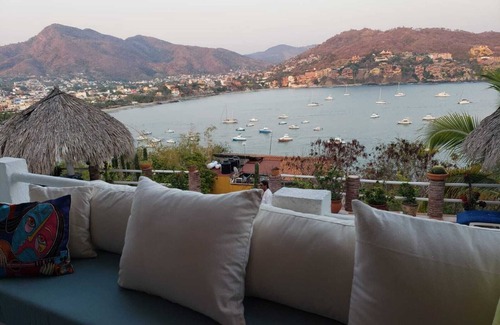 Enjoy the tranquility and breathtaking views of the Zihua bay from nearly every room in the house. Our location is second to none and only minutes to walk to central, beaches and the fabulous marcado.