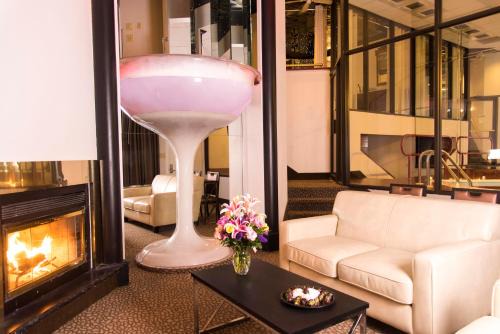 This adult-only romantic resort features themed suites with spa baths and fireplaces. This Poconos resorts overlooks a seasonal marina and golf course. A refrigerator and seating area by fireplace is standard in all suites at the Paradise Stream Resort. Some suites also offer a private pool and sauna. Guests can request room service or eat in the dining room, which features a breakfast buffet. The resort also offers a gym and game room. In the evening the resort hosts a nightclub with DJ and dance floor. The Paradise Stream is 6.8 mi from shopping at The Crossings Premium Outlets. Camelback Ski Area is 9.9 mi the hotel.