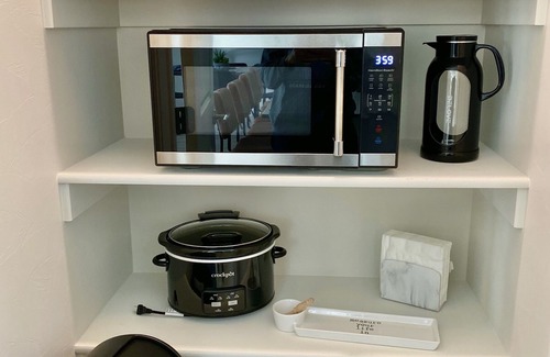 The kitchen contains high quality appliances, soft close cabinets and drawers plus everything you could need: Toaster, Crock Pot, Blender, Griddle, Electric Kettle, Drip Coffee Maker, K-Cup Coffee Maker, Knife Set, Pitcher, Pots/Pans, Plates, Cups, Silverware, Microwave, Spatulas/Misc Tools, and much more!