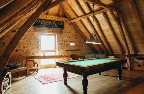 Parc de la Fage offers accommodations in Journiac, 23 miles from Sarlat-la-Canéda Train Station and 28 miles from Bergerac Train Station. This property offers access to a patio, pool at the pool table, free private parking, and free Wifi. The vacation home features an outdoor swimming pool, hot tub, and a concierge service. Accommodation for disabled guests is also available at the property. Featuring a terrace and pool views, the spacious vacation home includes 10 bedrooms, 4 living rooms, satellite flat-screen TV, an equipped kitchen, and 1 bathroom with a walk-in shower and a bath. Guests can enjoy an ambient stay in their soundproof room with parquet floors and a fireplace. The property has an outdoor dining area. There is an on-site bar, and during warmer months you can make use of the barbecue facilities. You can play table tennis and tennis at the vacation home, and the area is popular for cycling and hiking. A children's playground is also available at Parc de la Fage, while guests can also relax in the garden. Lascaux is 25 miles from the accommodation, while Domaine de la Marterie Golf Course is 4.6 miles from the property. The nearest airport is Bergerac Dordogne Périgord Airport, 29 miles from Parc de la Fage.