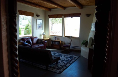 Charming one bedroom casita (small house), located in the Paria Canyon, close to the Wave, Lake Powell, Bryce Canyon, Zion and the North Rim of the Grand Canyon. Sleeps 3, Full kitchen, Southwestern style living room with amazing views. Adjacent to Highway 89 at mile marker 22 in the Paria Valley. Almost half way between Page AZ and Kanab Utah. On 9 acres with a beautiful view of the Milky Way at night. Photographer's and hiker's dream. One Bedroom with Queen sized bed and a full sized futon in living room that sleeps an additional adult, plus a twin sized roll-away. The best tasting water you have ever had from a 700 foot well. Views of the owner's Paria River Vineyard.