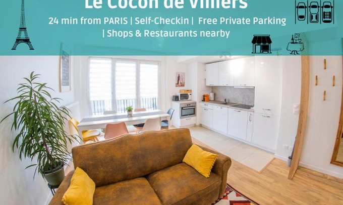 Paris & DisneyLand - 2min From Train Station - Free Private Parking | Apartment in Villiers-sur-Marne