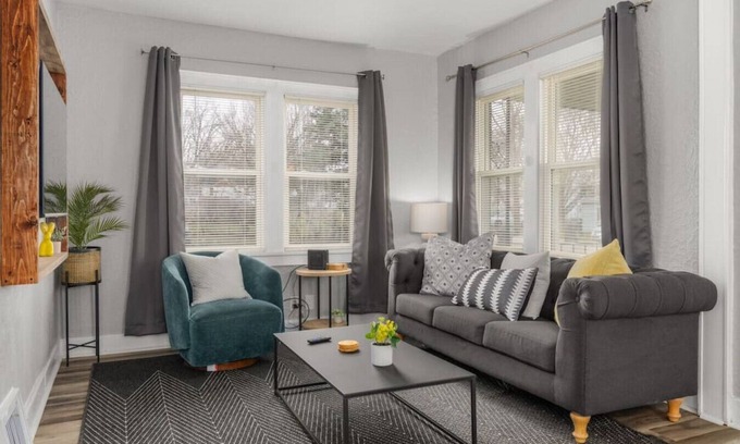 Come check this unique, cheerful home for your next trip or extended stay. We are proudly a smoke-free home and do not tolerate any kinds of smoking. Everything you need is at your fingertips. Kitchen comes with all cookware, bakeware, and service-ware. Living room has large Smart TV for you to log-into your favorite streaming service. There is one bedroom on the first floor next to the bathroom. Please use caution with kids and elderly, the stairs to the upstairs bedrooms are steep.