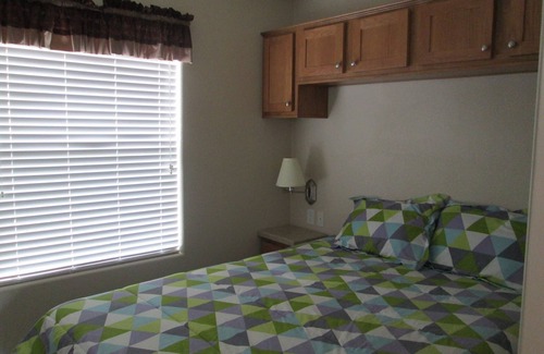 Orchard Ranch Resort is located in the beautiful Prescott area in the shadow of the Bradshaw and Mingus mountain ranges. Combining a comfortable high desert summer climate with mild winter temperatures makes Orchard Ranch an ideal year-round resort. Along with the wide variety of Prescott area interests and activities, Orchard Ranch offers a variety of activities This property is very charming, move in ready with living room w/ queen size hide-a-bed sofa for guests, dining area, fully equipped kitchen, bathroom with tub/shower and bedroom with queen bed and lots of closet space. The HVAC unit is very sufficient for any type of weather. As a bonus there is a screened in patio with table, chairs and ceiling fan for added comfort. Property is 1 minute walk to pickle ball, large pool, sauna, fully equipped exercise room, mailboxes, putting greens, club house, billiard room and bocce ball court, covered social hall and entertainment hall. The neighbors are friendly. Prescott and Prescott Valley offer a wide variety of activities for those interested in Arizona history, Western & Native American art, antique shops, golfing, fishing, hiking, gambling casinos, panning for gold, or just exploring the many back-mountain roads. The park has printed rules and first time guest must fill out a background form with the Park office