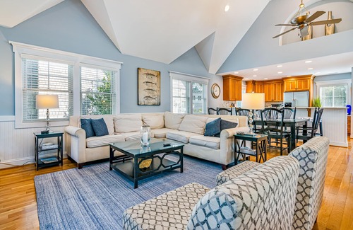 The house, ideal for a two-family vacation, is decorated in a timeless coastal style with comfortable bedding and furniture. The reverse floor plan features a 2nd floor screened-in porch to take advantage of the sights of the adjacent park, and the sounds of the nearby ocean.