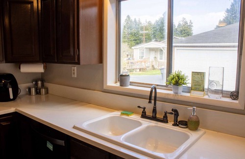Enjoy a 3-minute walk to the sky bridges at Sequoia Park Zoo, where an original Star Wars scene was filmed. Unwind in this split floorplan 5-bedroom* remodeled house in the desirable Cutten area, enveloped in old-growth redwoods. The house features all-white bedding, blackout curtains, a projector movie theater experience, and a bonus room* with a pool table, darts, and foosball. Samoa Beach, trails, Old Town Eureka, the Carson Mansion, and Woodley Island Marina are all close by.